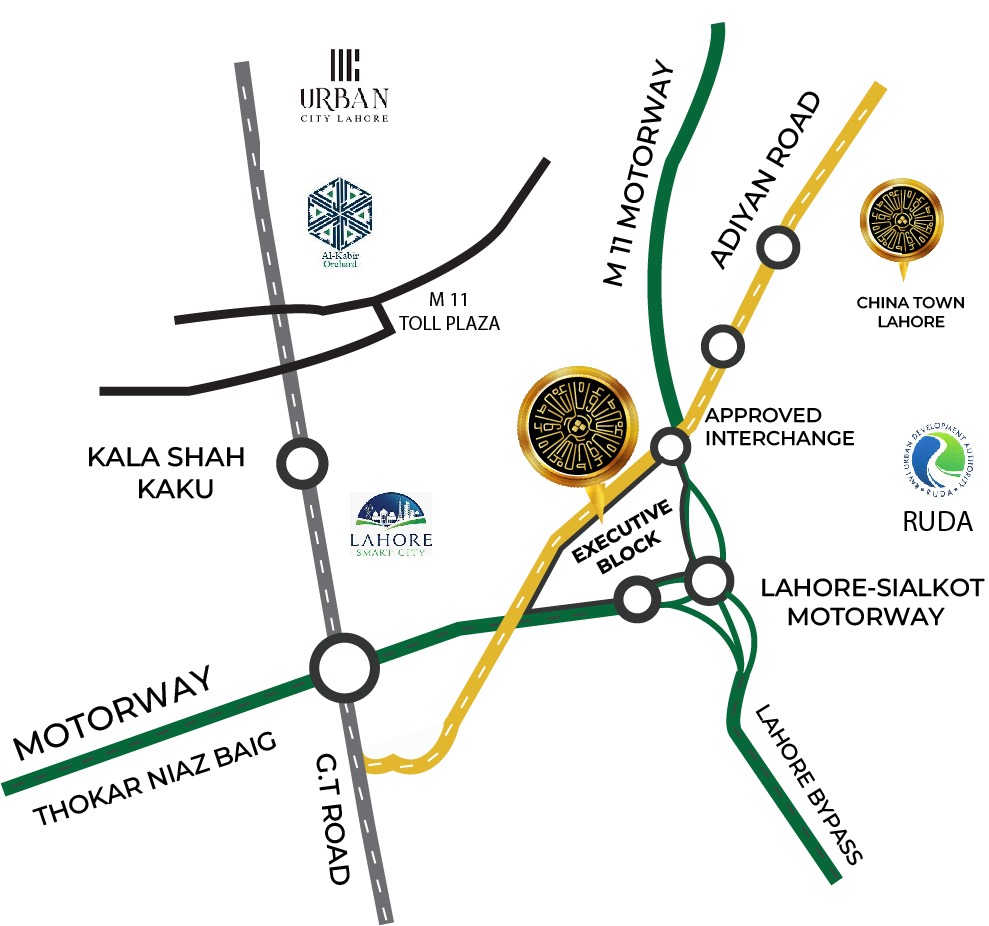At China Town Housing Society, we understand the importance of location when it comes to finding your dream home. Nestled away from the hustle and bustle of Lahore, our supreme location offers you the best of both worlds.